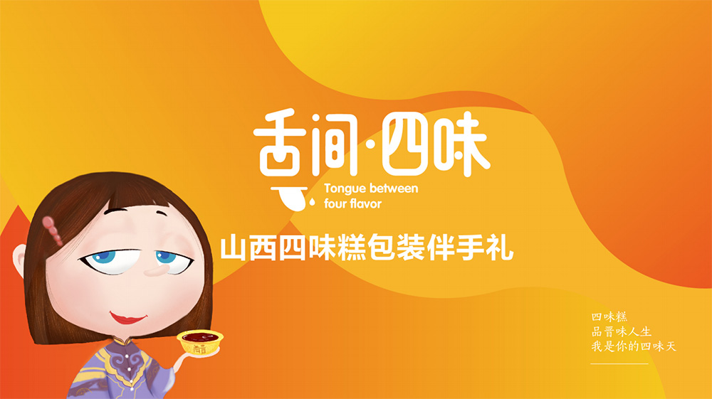 為了突出包裝產(chǎn)品特色,配合四味糕四味的特點,想到了舌尖四味、嘴間四味和晉之四味三個名稱,最終決定為“舌尖四味”,“舌尖”二字仿佛就在嘴中的感覺,讓品嘗者浮想聯(lián)翩,仿佛香味就在自己身邊。