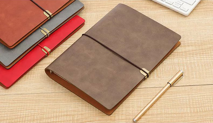 筆記本封皮的材料,有紙面、皮面、布面以及一些特殊材質(zhì)。其中皮革類因?yàn)橛心湍シ浪奶匦裕禽^為常用的。